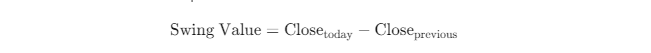 The Swing Value calculates the difference between the current closing price and the previous close. This difference shows the basic price movement.