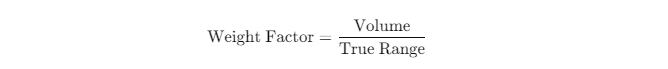 The Weight Factor is calculated by dividing the Volume by the True Range, which helps adjust the weight of each price move based on its volatility.